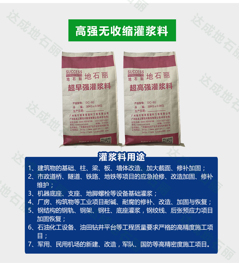 達(dá)成地石麗超早強(qiáng)灌漿料,超高強(qiáng)灌漿料使用說(shuō)明