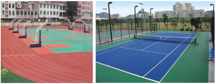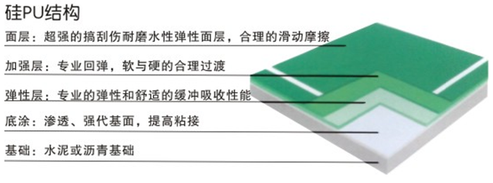 三、環(huán)保型硅PU,根據(jù)運動力學原理,巧妙的三層結(jié)構(gòu)設計,使運動地面的彈性達到極為合理的布置,利于運動員各關(guān)節(jié)的環(huán)保,使得運動員得到最有利的 發(fā)展。