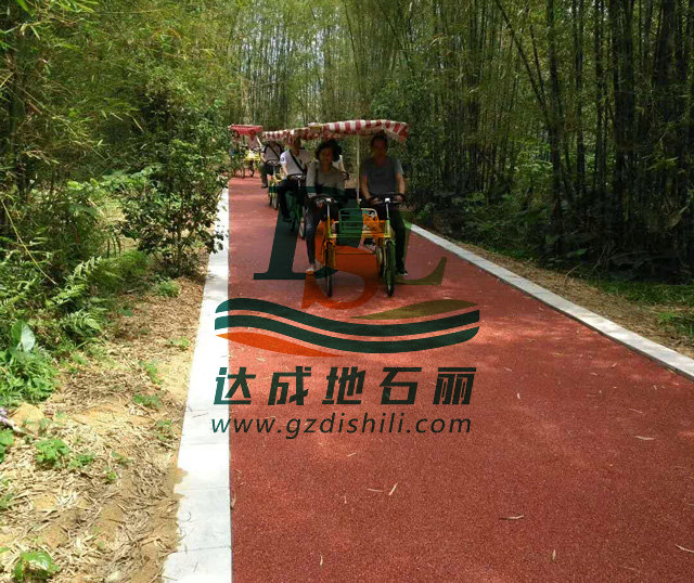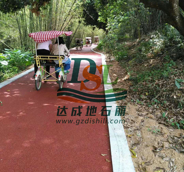 澆筑:在澆筑之前,路基必須先用水濕潤(rùn)。否則透水地坪快速失水份會(huì)減弱骨料間的粘結(jié)強(qiáng)度。由于透水地坪拌合物比較干硬,將拌和好的透水地坪和好的透水地坪材料鋪在路基上鋪平即可。