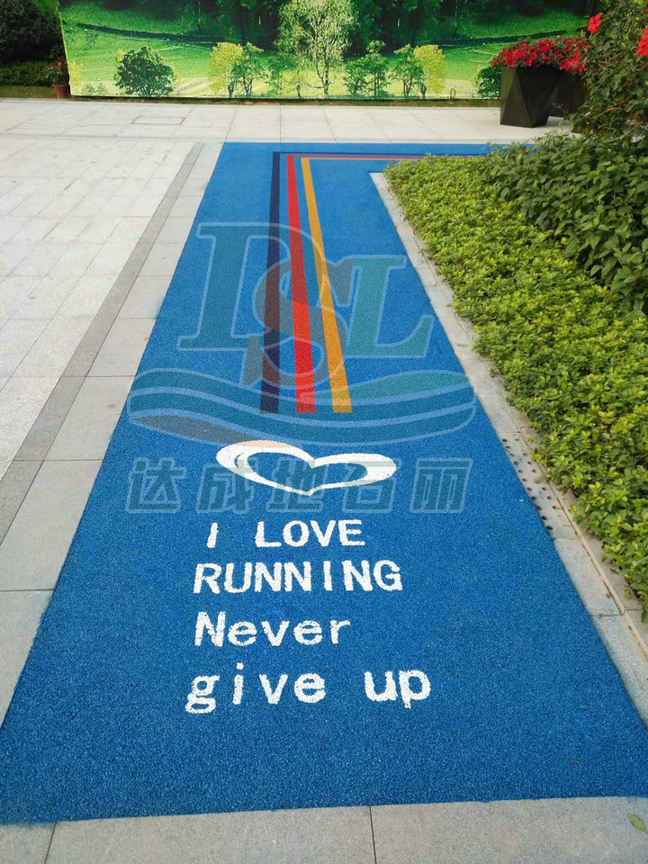 最近,就在佛山順德,廣州地石麗也是完成了一項(xiàng)工程。如果你在順德,相信你對(duì)大良龍光玖龍郡就不會(huì)陌生。每一個(gè)步履不停的品牌,都是推動(dòng)城市向上的齒輪。22載匠心筑居淬煉史,布局20余城,擁有150個(gè)典藏項(xiàng)目的中國(guó)房地產(chǎn)26強(qiáng)龍光,為東鳳榮耀而來,助力東鳳展現(xiàn)城市魅力。放眼東鳳,千篇一律的樓盤鮮有特色,而龍光集團(tuán)深研東鳳城市人文以及人居追求,精心擇址東阜路,打造東鳳首個(gè)新中式奢居——龍光·玖龍郡。作為一個(gè)高檔奢侈的住宅園林區(qū),這次玖龍郡更是升級(jí)改造,由廣州地石麗施工團(tuán)隊(duì)鋪設(shè)了符合國(guó)家海綿城市建設(shè)要求的透水混凝土路面,為玖龍郡的居民提供了舒適的活動(dòng)場(chǎng)所,同時(shí)也將慢慢提高小區(qū)人民生活環(huán)境的質(zhì)量。這次玖龍郡選擇的是美麗,冷靜,理智,安詳與廣闊的藍(lán)色,作為透水混凝土路面的主要色調(diào)。其中還有黑紅橙三色作為三杠的線條顏色,簡(jiǎn)約而美麗。藍(lán)色的生態(tài)透水混凝土表面還有白色的英文標(biāo)語“YOU HAPPY”“I LOVE RUNNING Never give up”。如果你剛好在玖龍郡,不妨去看看這新鋪設(shè)的漂亮的藍(lán)色透水路面。在上面運(yùn)動(dòng)也是十分舒適,腳感舒服。